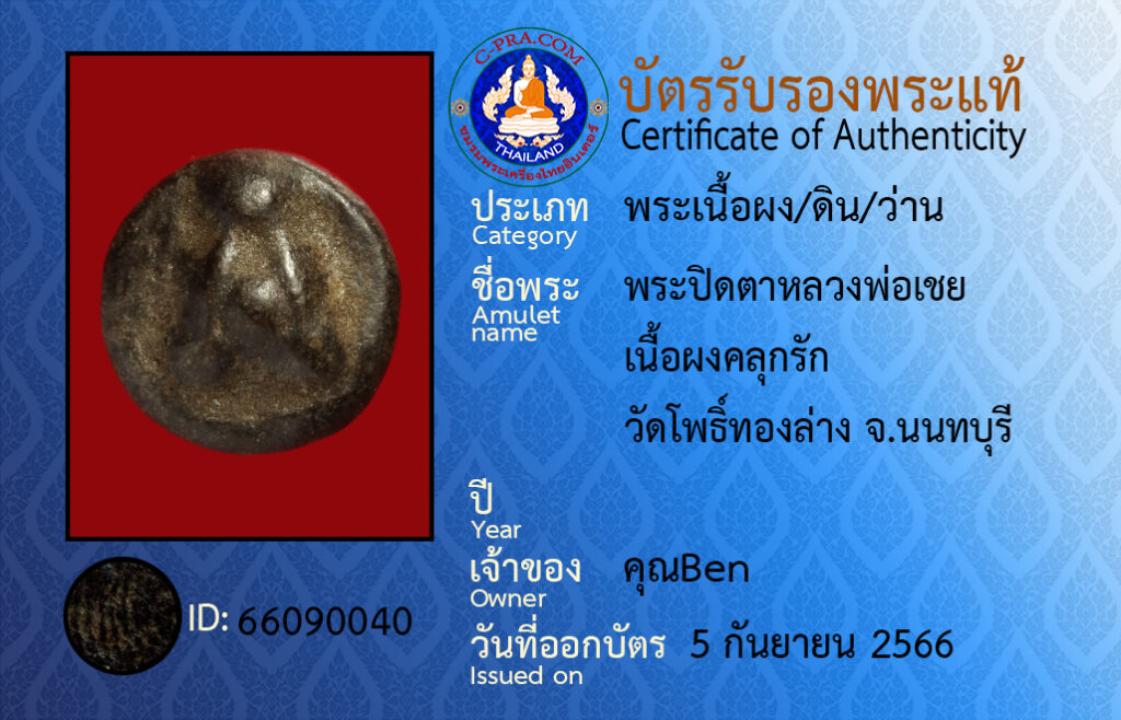 ชื่อพระ : พระปิดตาหลวงพ่อเชย เนื้อผงคลุกรัก วัดโพธิ์ทองล่าง จ.นนทบุรี