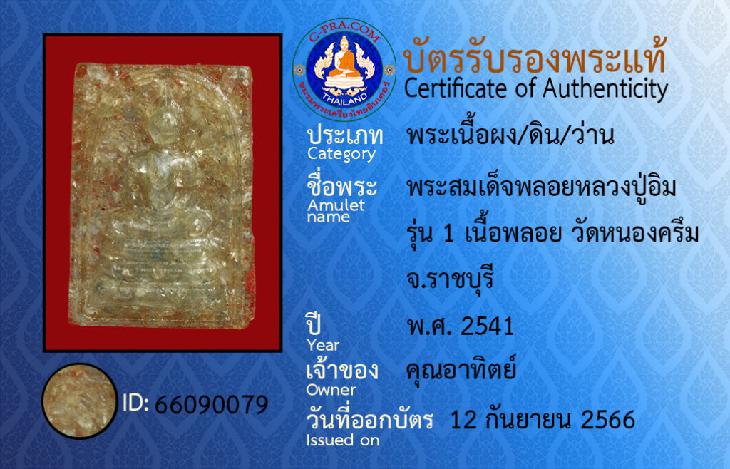 ชื่อพระ : พระสมเด็จพลอยหลวงปู่อิม รุ่น 1 เนื้อพลอย วัดหนองครึม จ.ราชบุรี