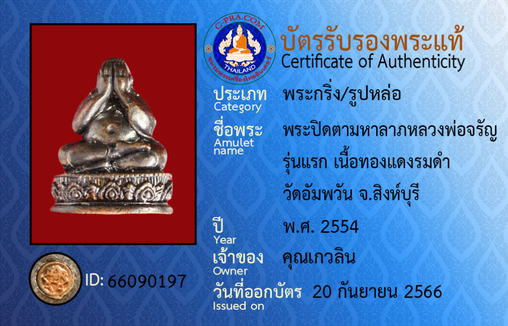 Amulet : Pra bpit dtam ha lap luang por ja-ran · run raek · neua tong daeng rom dam · wat am-pa-wan Sing Buri
