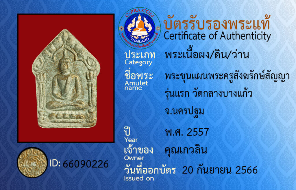 Amulet:pra kun paen pra kroo sang ka rak san-ya run raek wat glang bang-gaew na-kon ba-tom