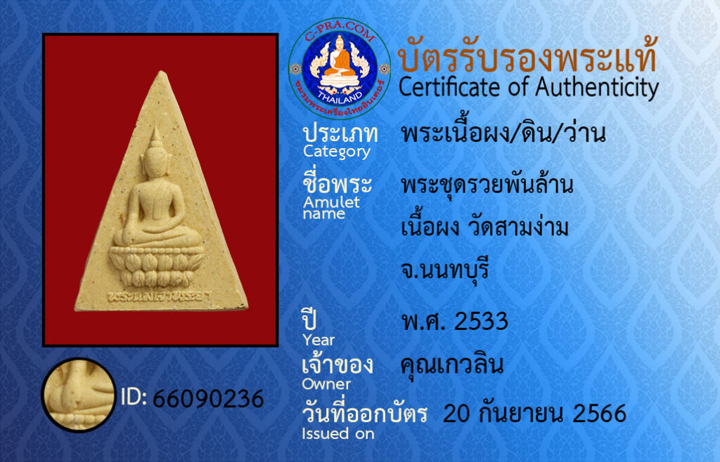 Amulet:pra chut ruay pan lan · neua pong · wat sam ngam non-ta-bu-ree