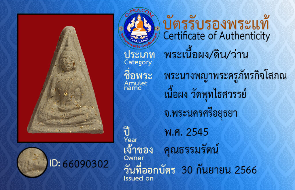 Amulet: Pra nang-pa-ya pra kroo pat git soh-pon · neua pong · wat-put-tai-sa-wan Phra Nakhon Si Ayutthaya