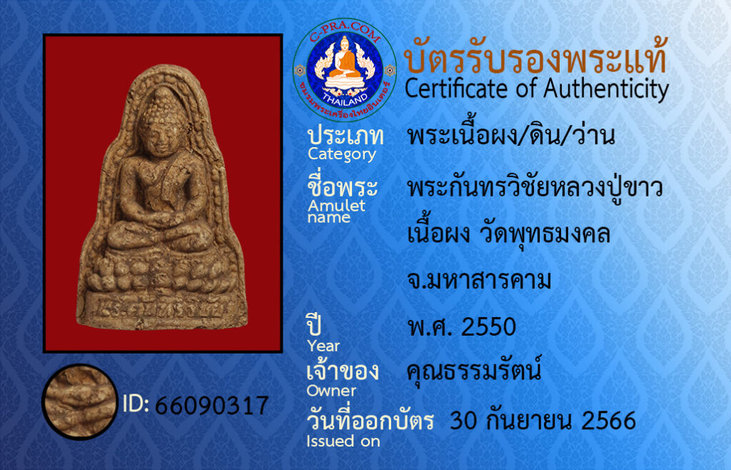 ชื่อพระ: พระกันทรวิชัยหลวงปู่ขาว เนื้อผง วัดพุทธมงคล จ.มหาสารคาม