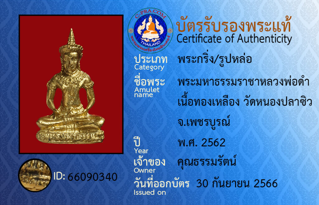 ชื่อพระ: พระมหาธรรมราชาหลวงพ่อดำ เนื้อทองเหลือง วัดหนองปลาซิว จ.เพชรบูรณ์