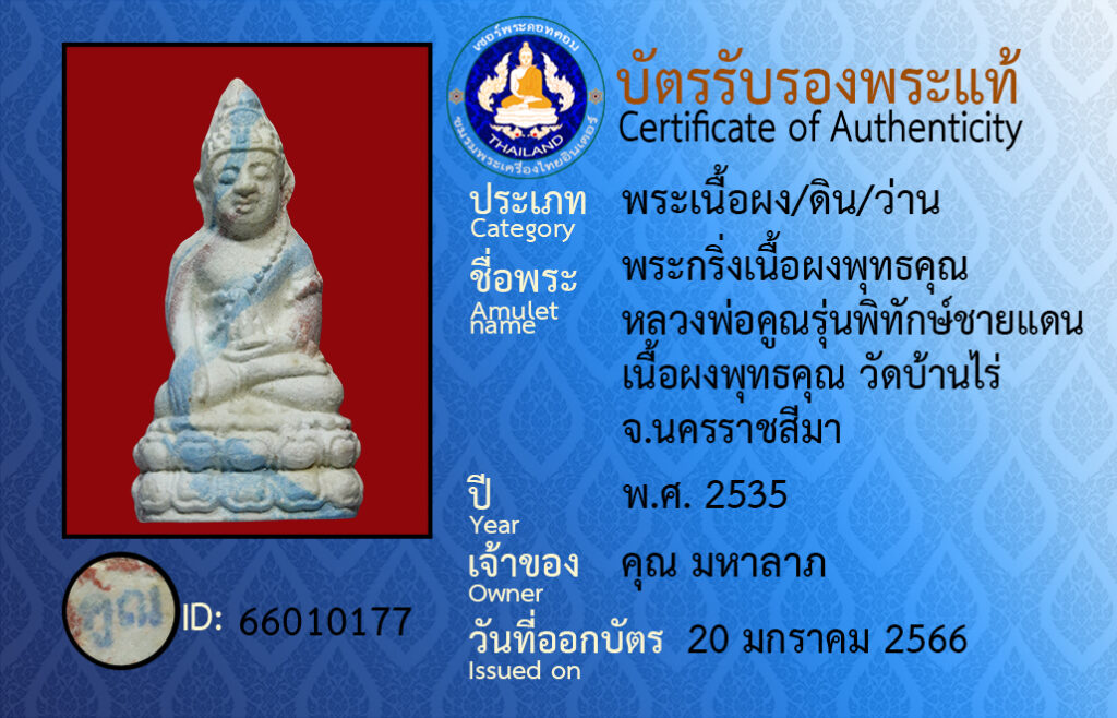 ชื่อพระ : พระกริ่งเนื้อผงพุทธคุณ หลวงพ่อคูณ รุ่นพิทักษ์ชายเเดน เนื้อผงพุทธคุณ วัดบ้านไร่ จ.นครราชสีมา