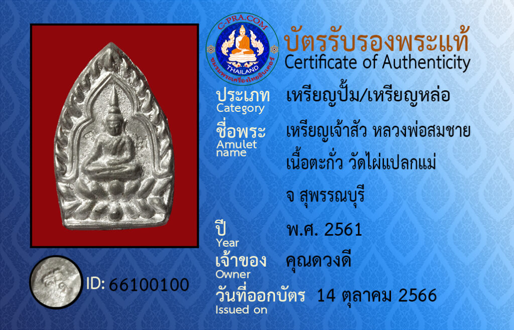 ชื่อพระ: เหรียญเจ้าสัว หลวงพ่อสมชาย เนื้อตะกั่ว วัดไผ่แปลกแม่ จ สุพรรณบุรี