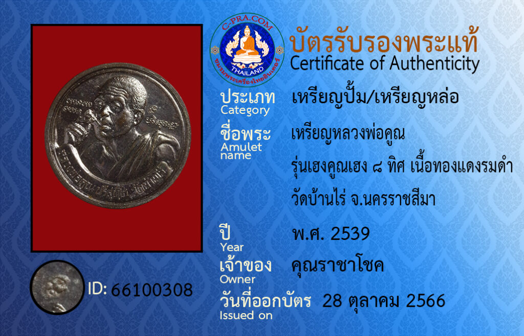 Amulet name : Rian luang por koon · run heng koon heng 8 tit · neua tong daeng rom dam · wat ban rai · Nakhon Ratchasima
