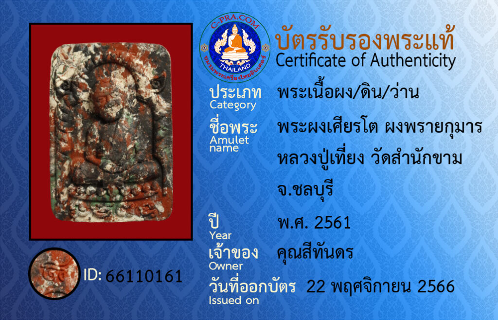 ชื่อพระ : พระผงเศียรโต ผงพรายกุมาร หลวงปู่เที่ยง วัดสำนักขาม จ.ชลบุรี