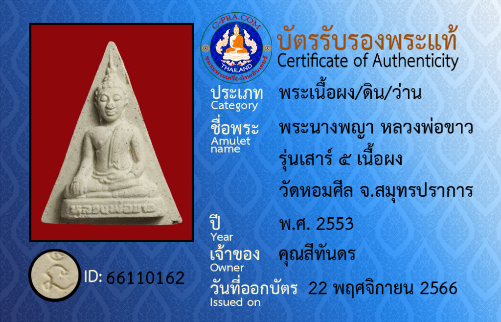 ชื่อพระ : พระนางพญา หลวงพ่อขาว รุ่นเสาร์ ๕ เนื้อผง วัดหอมศีล จ.สมุทรปราการ