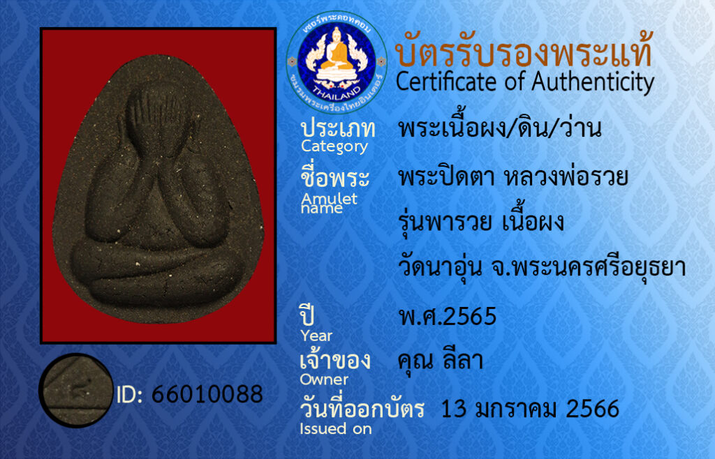 ชื่อพระ : พระปิดตา หลวงพ่อรวย รุ่นพารวย เนื้อผง วัดนาอุ่น จ.พระนครศรีอยุธยา