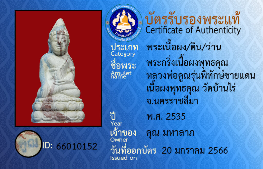 Amulet name : pra kring luangpor koon wat ban rai
