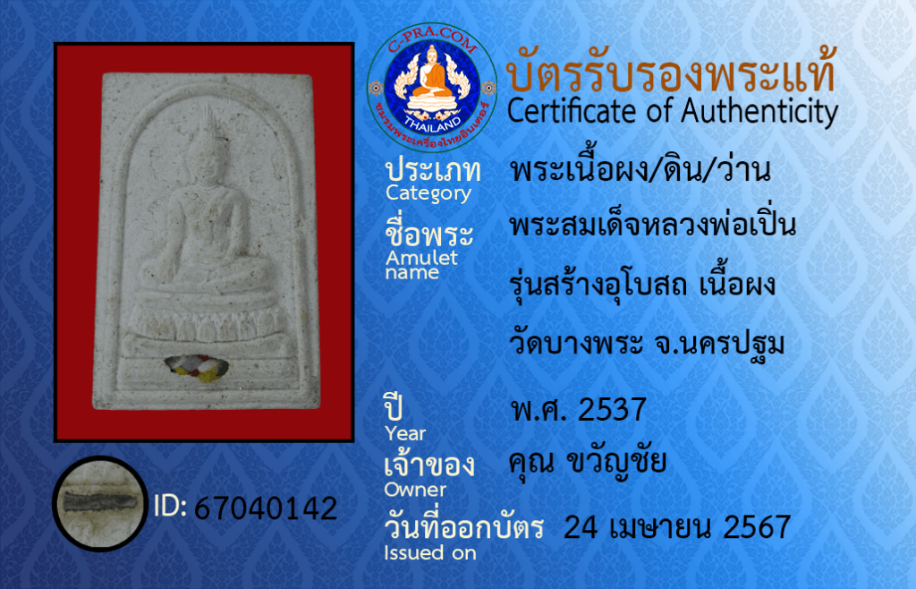 ชื่อพระ :พระสมเด็จหลวงพ่อเปิ่น รุ่นสร้างอุโบสถ เนื้อผง วัดบางพระ จ.นครปฐม