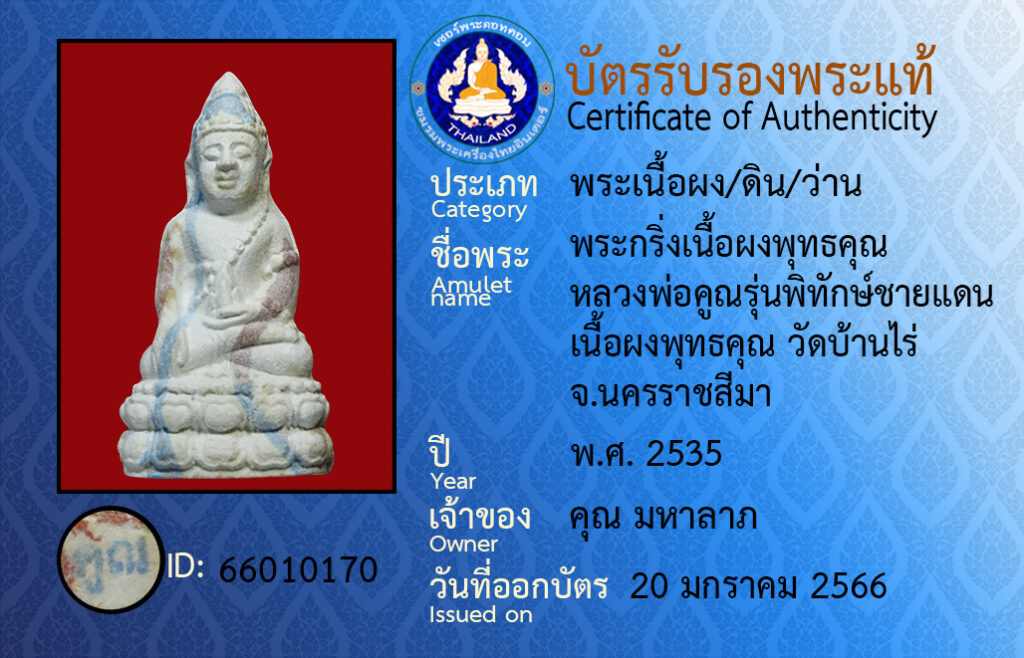 Amulet name : pra kring luangpor koon wat ban rai