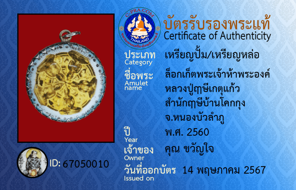 ชื่อพระ :ล็อกเก็ตพระเจ้าห้าพระองค์ หลวงปู่ฤาษีเกตุแก้ว สำนักฤาษีบ้านโคกกุง จ.หนองบัวลำภู