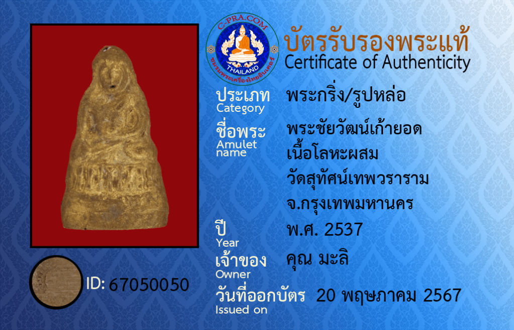 ชื่อพระ :พระชัยวัฒน์เก้ายอด