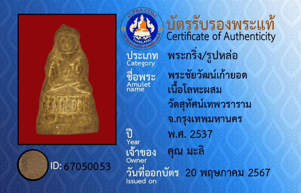 Amulet name :Phra Chaiwat Kao Yot