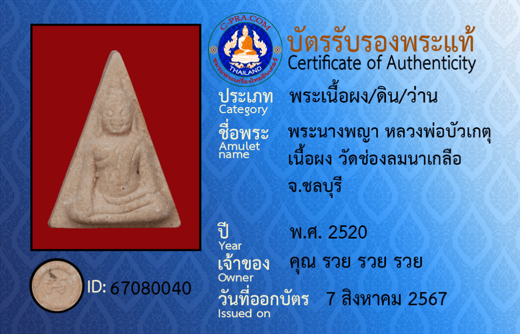 ชื่อพระ :พระนางพญา หลวงพ่อบัวเกตุ