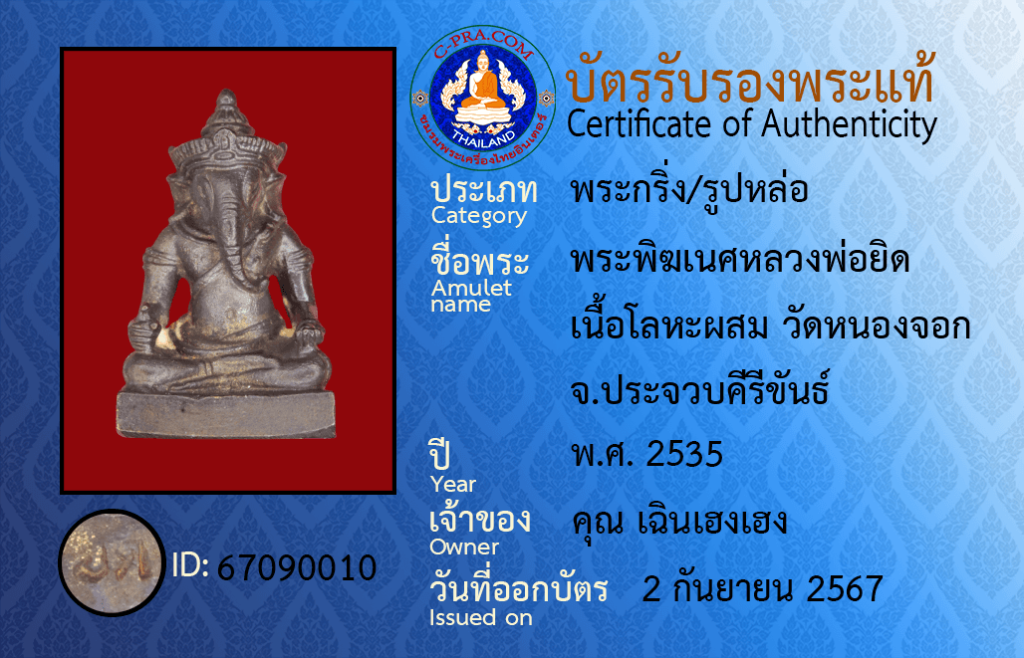 ชื่อพระ :พระพิฆเนศหลวงพ่อยิด
