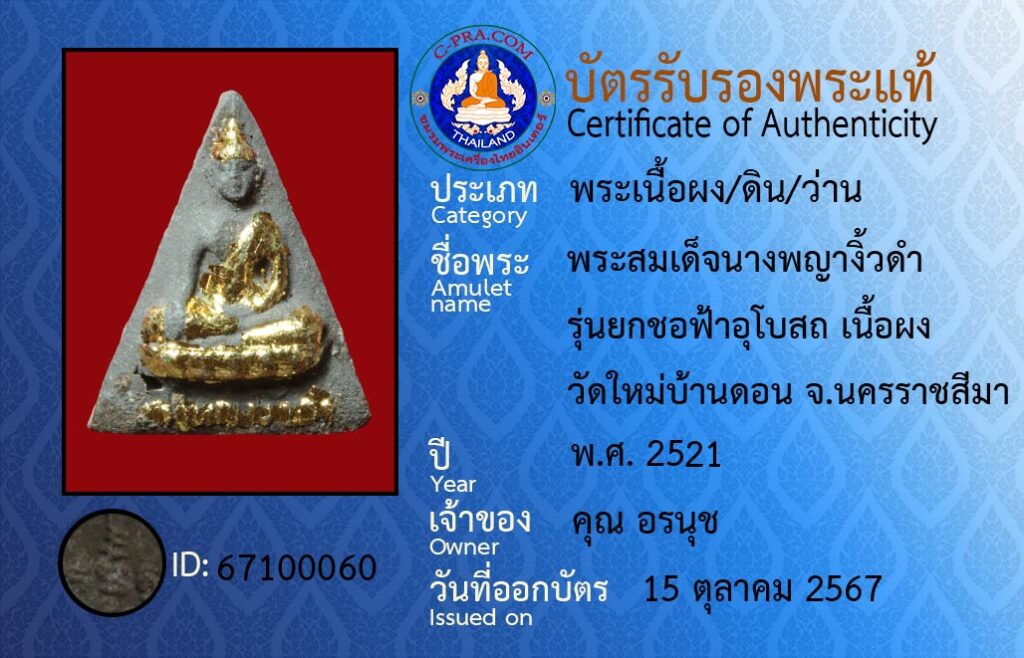 ชื่อพระ :พระสมเด็จนางพญางิ้วดำ รุ่นยกชอฟ้าอุโบสถ เนื้อผง วัดใหม่บ้านดอน จ.นครราชสีมา
