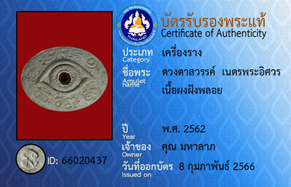 ชื่อพระ :ดวงตาสวรรค์ เนตรพระอิศวร เนื้อผงฝังพลอย