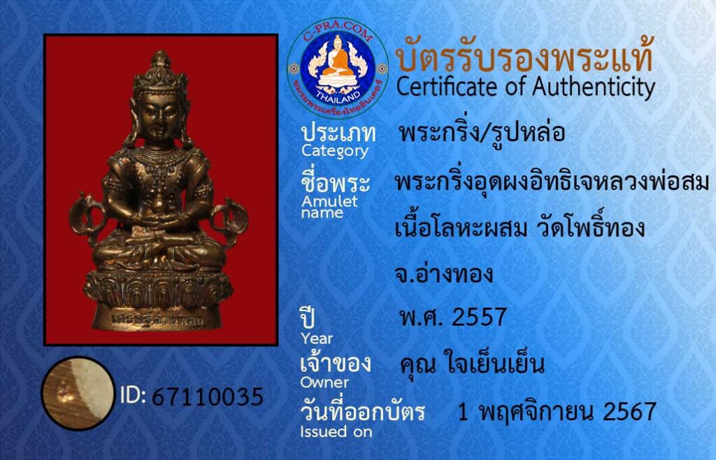 ชื่อพระ :พระกริ่งอุดผงอิทธิเจหลวงพ่อสม