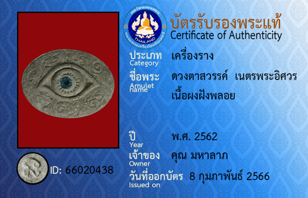 ชื่อพระ :ดวงตาสวรรค์ เนตรพระอิศวร เนื้อผงฝังพลอย
