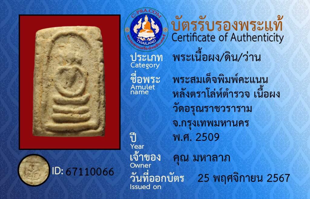 ชื่อพระ :พระสมเด็จพิมพ์คะแนน