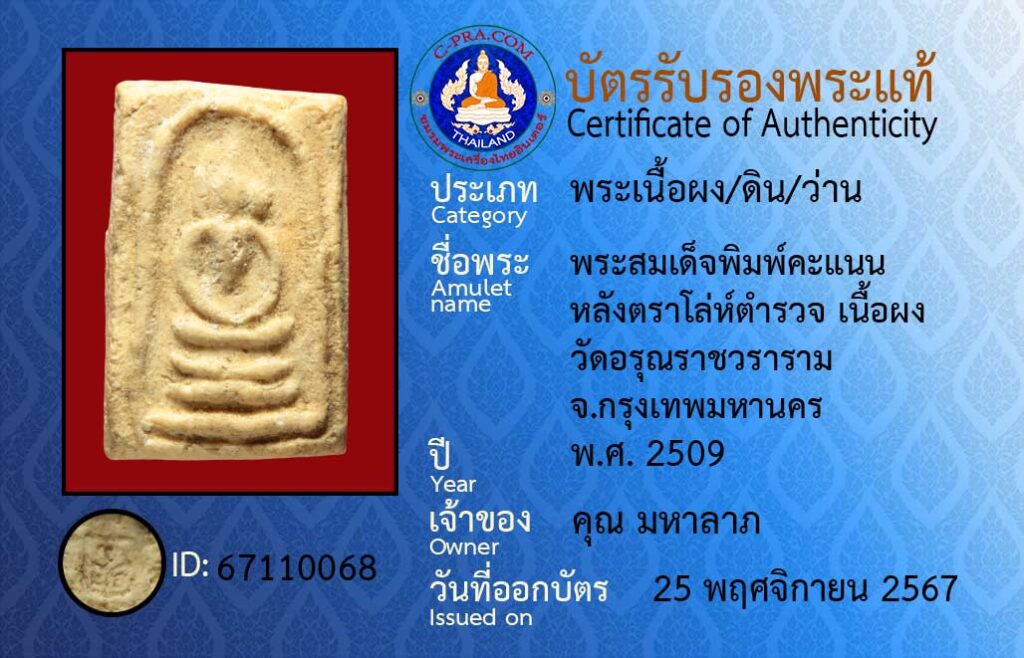 ชื่อพระ :พระสมเด็จพิมพ์คะแนน