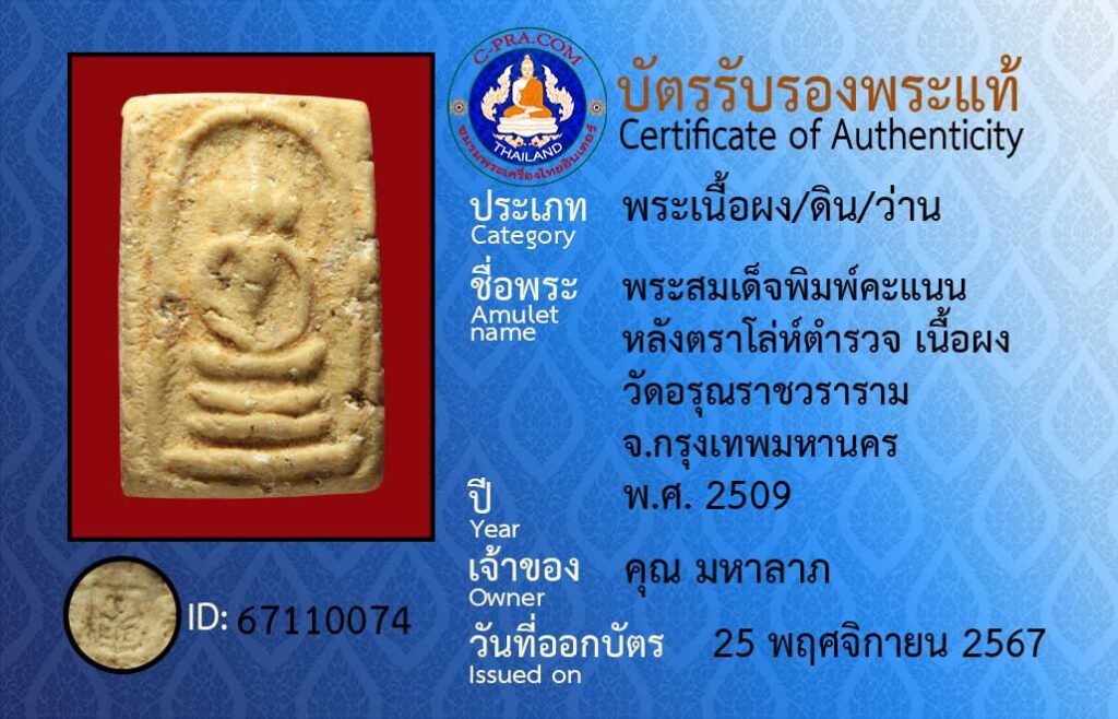 ชื่อพระ :พระสมเด็จพิมพ์คะแนน