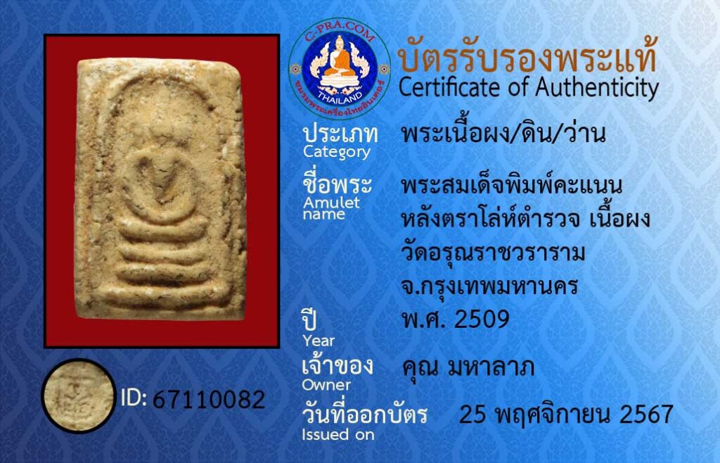 ชื่อพระ :พระสมเด็จพิมพ์คะแนน