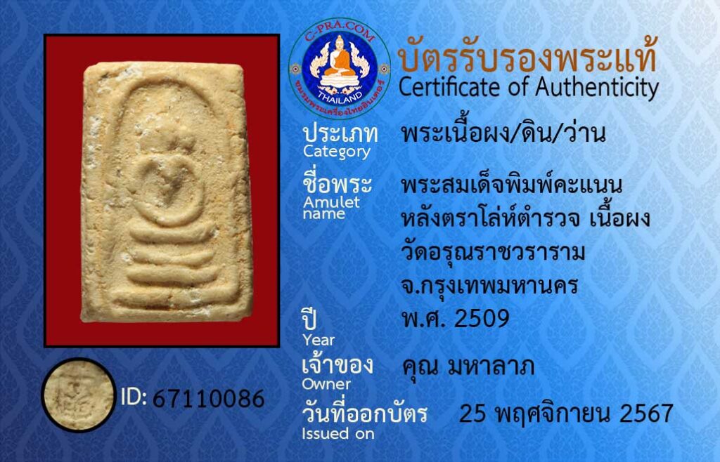 ชื่อพระ :พระสมเด็จพิมพ์คะแนน