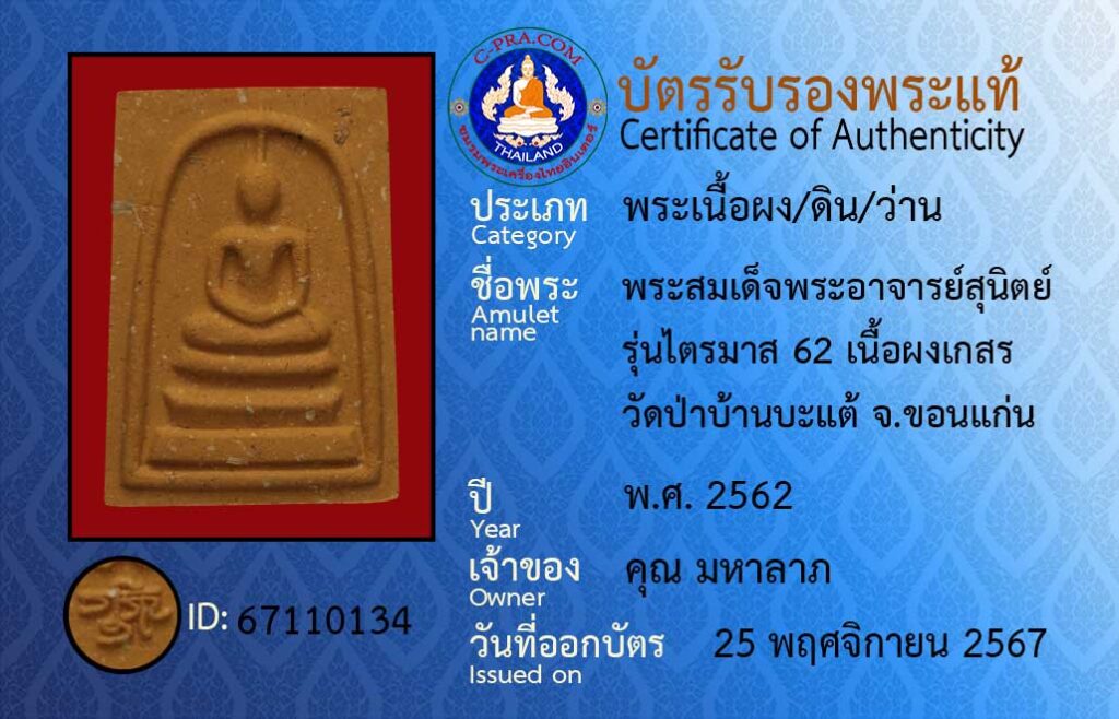 ชื่อพระ :พระสมเด็จมีสุขมีโชค พระอาจารย์สุนิตย์ รุ่น ร่ำรวย วัดป่าบ้านบะแต้ จ.ขอนแก่น