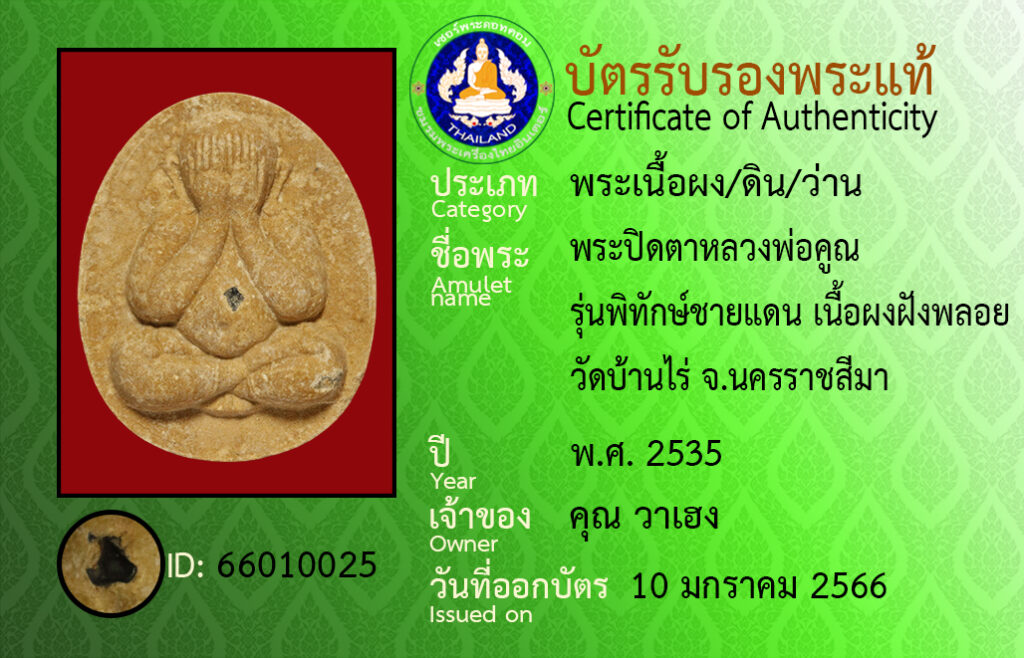 ชื่อพระ : พระปิดตาหลวงพ่อคูณ รุ่นพิทักษ์ชายแดน เนื้อผงฝังพลอย วัดบ้านไร่ จ.นครราชสีมา