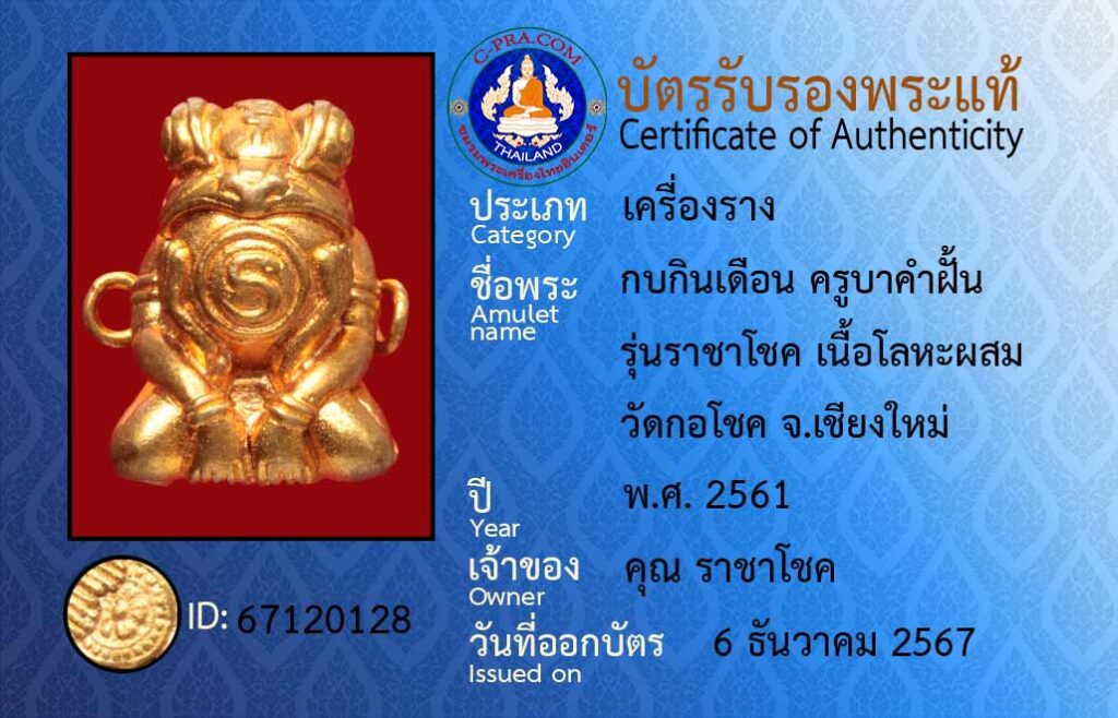 ชื่อพระ :กบกินเดือน ครูบาคำฝั้น รุ่นราชาโชค เนื้อโลหะผสม วัดกอโชค จ.เชียงใหม่