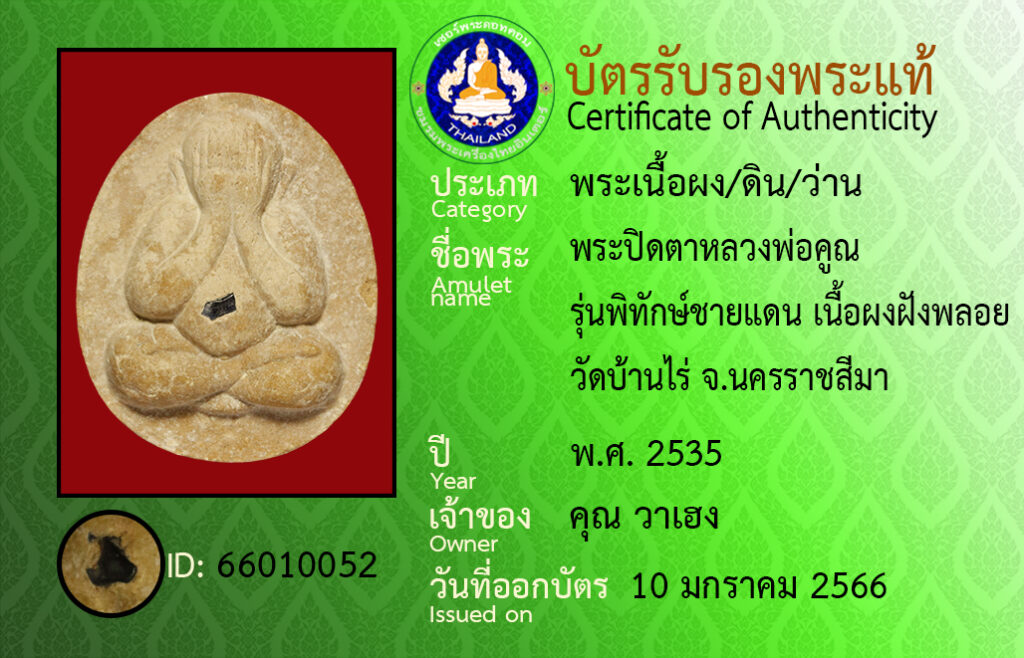 Amulet name : pra pid ta luang por koon wat ban rai