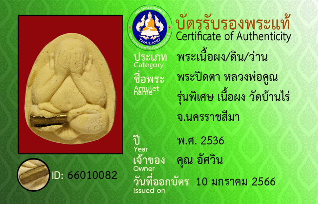 ชื่อพระ : พระปิดตาหลวงพ่อคูณ รุ่นพิทักษ์ชายแดน เนื้อผงฝังพลอย วัดบ้านไร่ จ.นครราชสีมา
