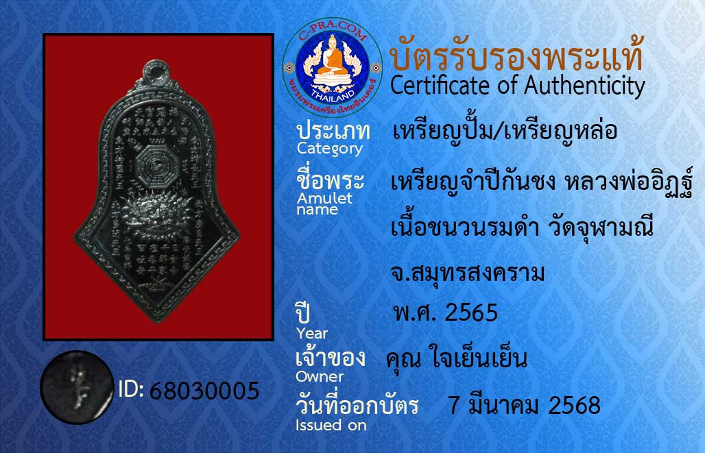 ชื่อพระ :เหรียญจำปีกันชง หลวงพ่ออิฏฐ์ เนื้อชนวนรมดำ วัดจุฬามณีจ.สมุทรสงคราม