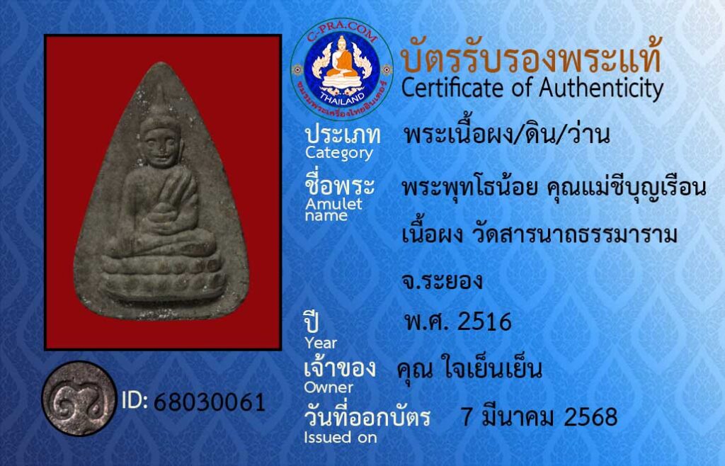 ชื่อพระ :พระพุทโธน้อย คุณแม่ชีบุญเรือน