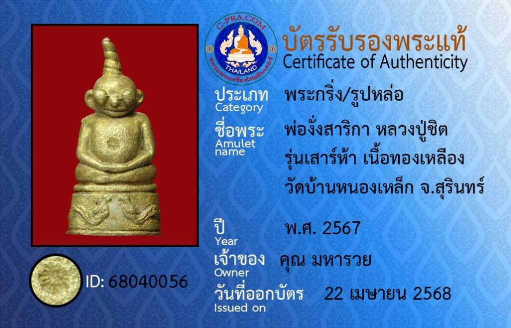ชื่อพระ :พ่องั่งสาริกา หลวงปู่ชิต