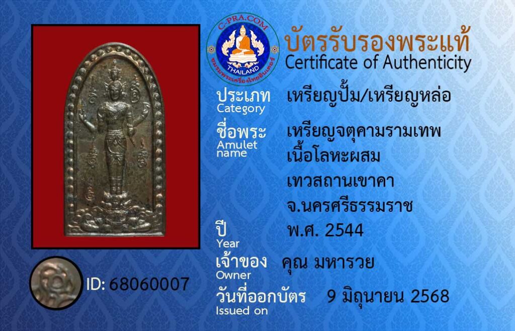 ชื่อพระ :เหรียญจตุคามรามเทพ เนื้อโลหะผสม เทวสถานเขาคา จ.นครศรีธรรมราช