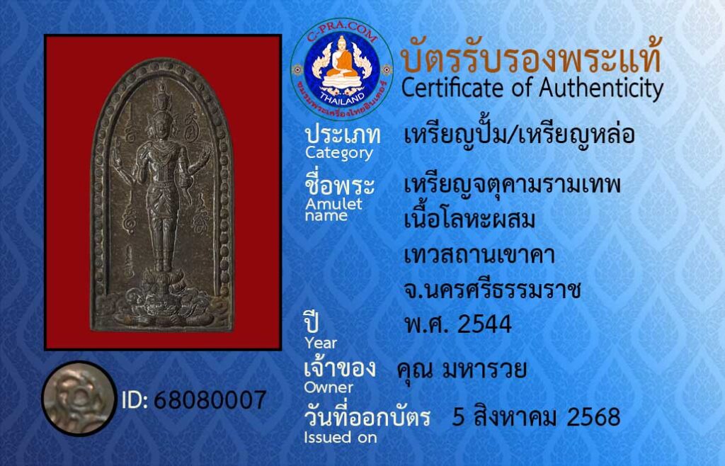 ชื่อพระ :เหรียญจตุคามรามเทพ เนื้อโลหะผสม เทวสถานเขาคา จ.นครศรีธรรมราช