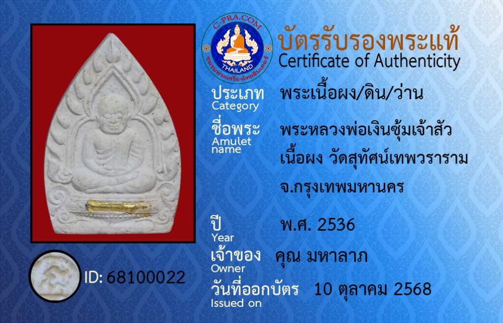 ชื่อพระ :พระหลวงพ่อเงินซุ้มเจ้าสัว