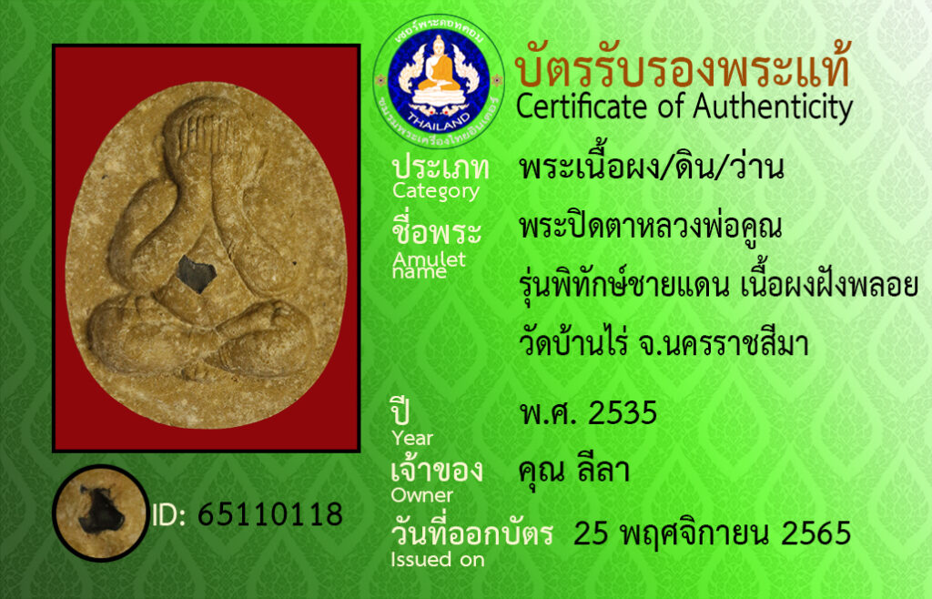 ชื่อพระ : พระปิดตาหลวงพ่อคูณ รุ่นพิทักษ์ชายแดน เนื้อผงฝังพลอย วัดบ้านไร่ จ.นครราชสีมา