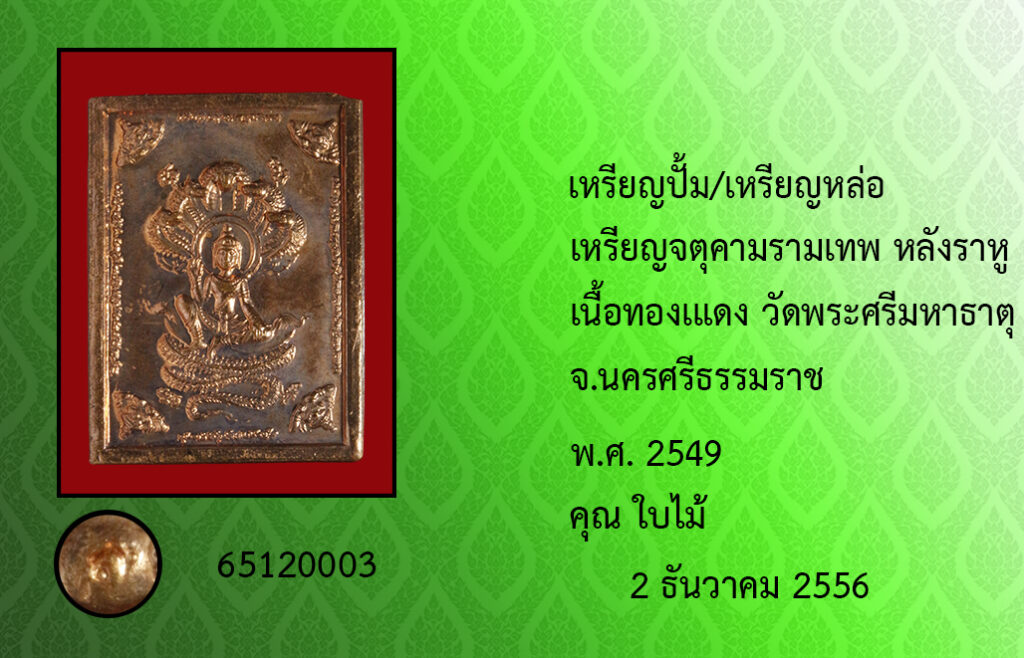 Amulet name : rian ja tu kram ram ma tep lang ra hoo wat pra see ma ha tat