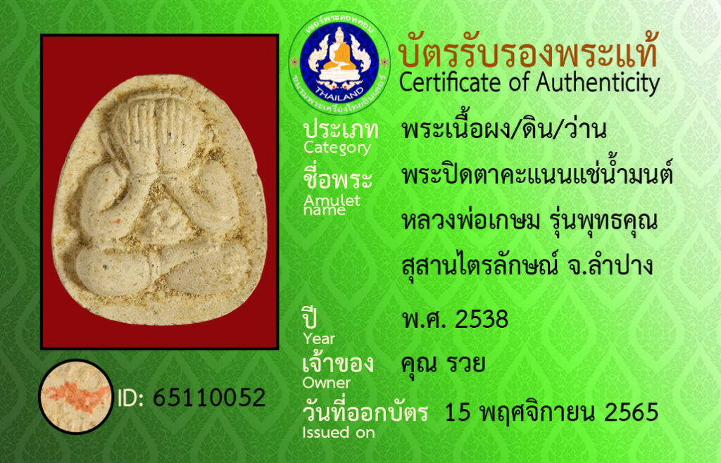 ชื่อพระ : พระปิดตาคะแนนเเช่น้ำมนต์ หลวงพ่อเกษม รุ่นพุทธคุณ สุสานไตรลักษณ์ จ.ลำปาง