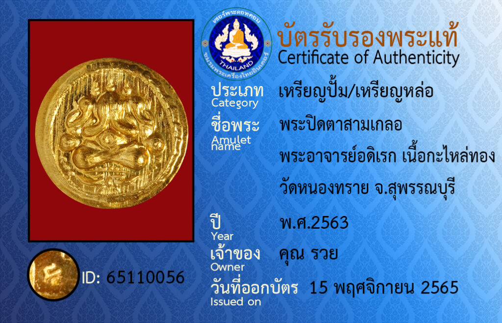 ชื่อพระ : พระปิดตาสามเกลอ พระอาจารย์อดิเรก เนื้อกะไหล่ทอง วัดหนองทราย จ.สุพรรณบุรี