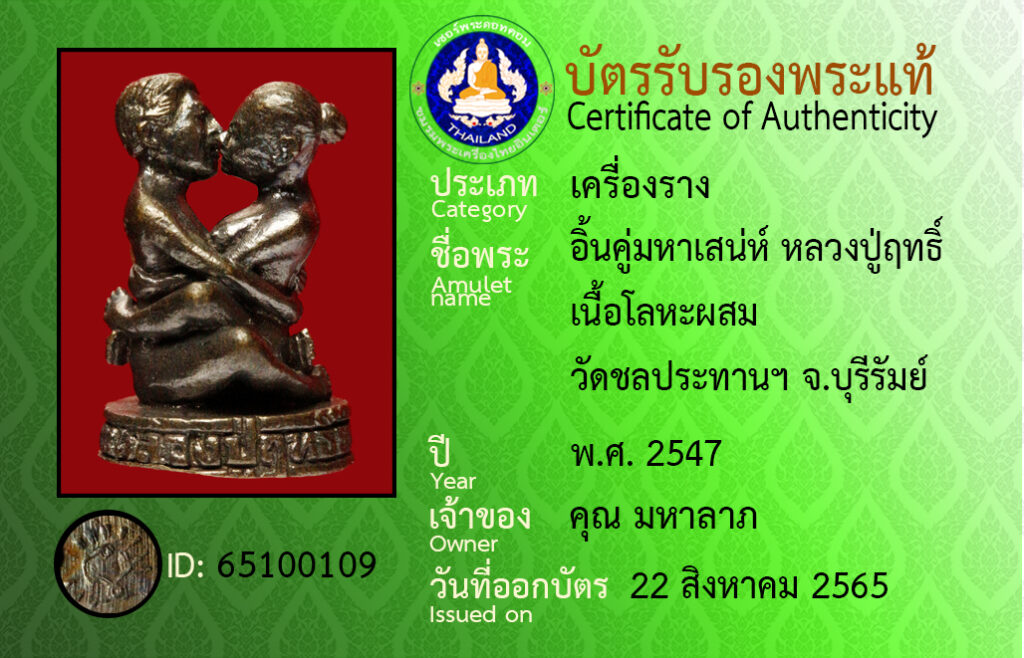 ชื่อพระ : อินคู่มหาเสน่ห์ หลวงปู่ฤทธิ์ เนื้อโลหะผสม วัดชลประทานฯ จ.บุรีรัมย์