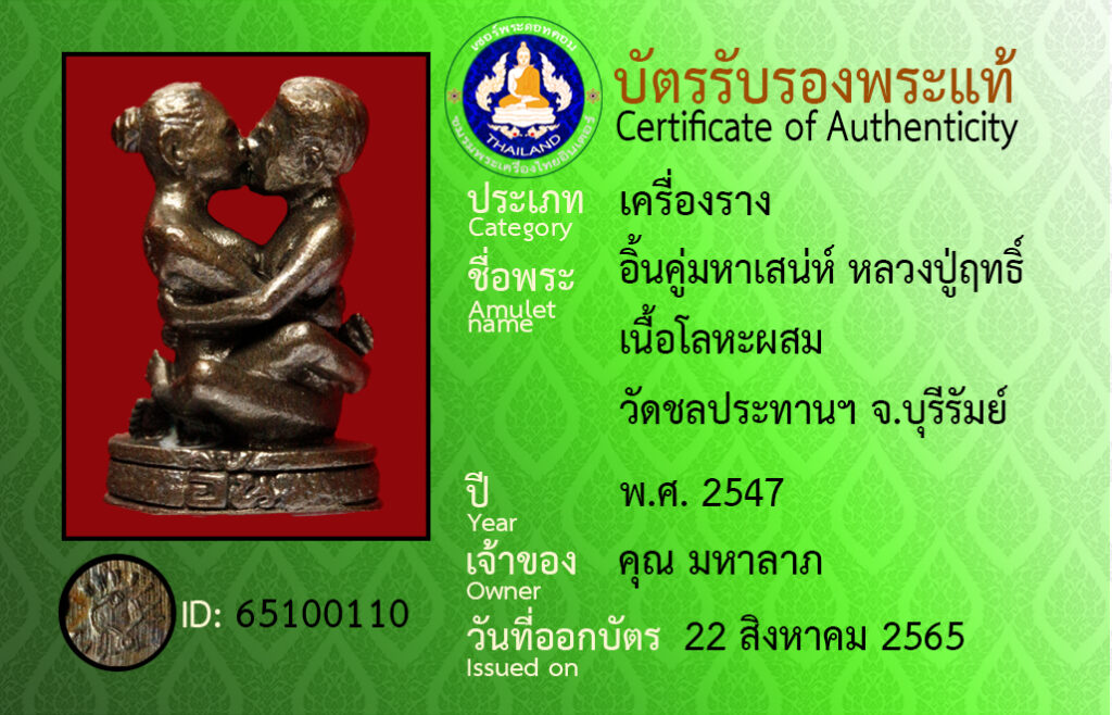 ชื่อพระ : อินคู่มหาเสน่ห์ หลวงปู่ฤทธิ์ เนื้อโลหะผสม วัดชลประทานฯ จ.บุรีรัมย์