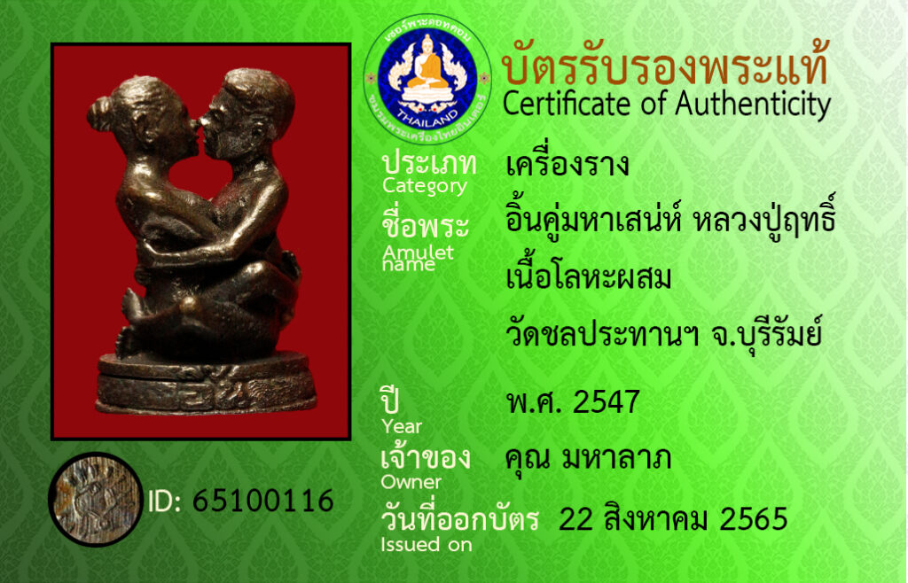 ชื่อพระ : อินคู่มหาเสน่ห์ หลวงปู่ฤทธิ์ เนื้อโลหะผสม วัดชลประทานฯ จ.บุรีรัมย์