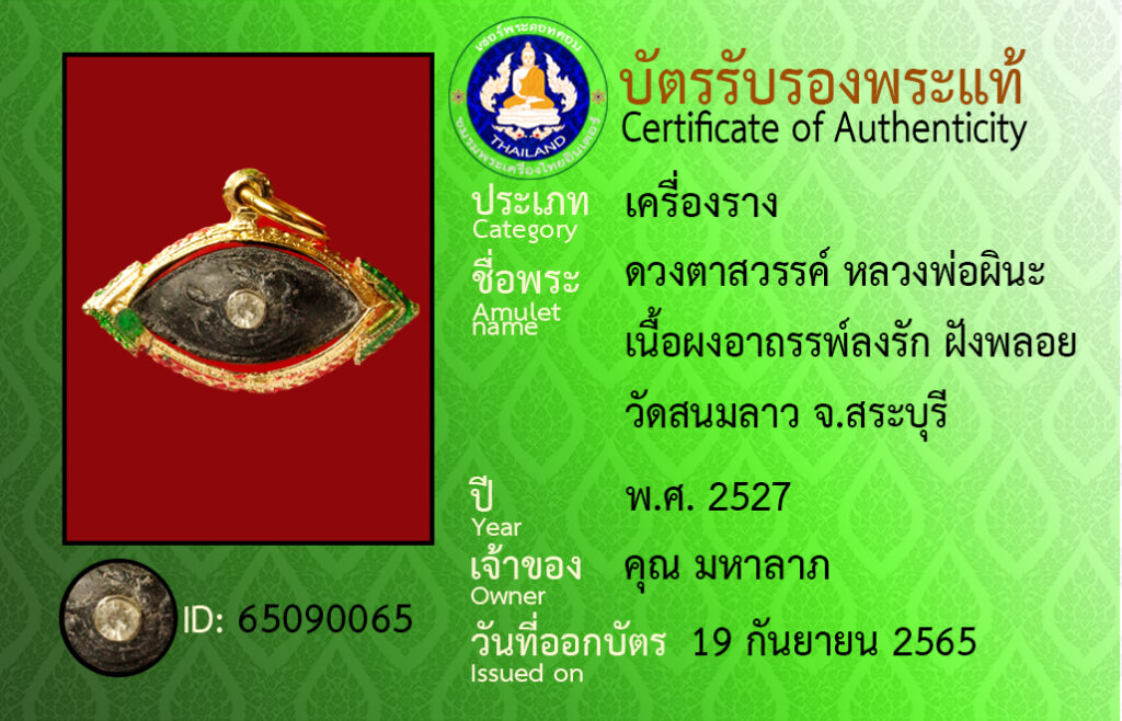 ชื่อพระ : ดวงตาสวรรค์ หลวงพ่อผินะ เนื้อผงอาถรรพ์ลงรัก ฝังพลอย วัดสนมลาว จ.สระบุรี